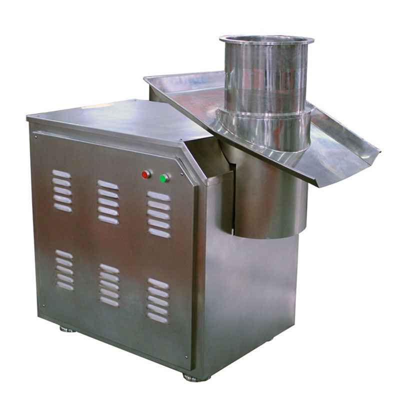 This machine adopts one pair of rotating grinding blade to grind form damp material into column-shape granule by stainless steel sieve cylinder which is provided to pelletize in next process. The machine can obtain different size granule by changing the stainless steel sieve. The machine is mainly suitable for pharmaceutical industry, foodstuff industry, chemical industry, and so on. It can make the stirred raw material granulate the needed granule. All parts contacted with raw material in this machine are made of stainless steel. This machine is high efficient.